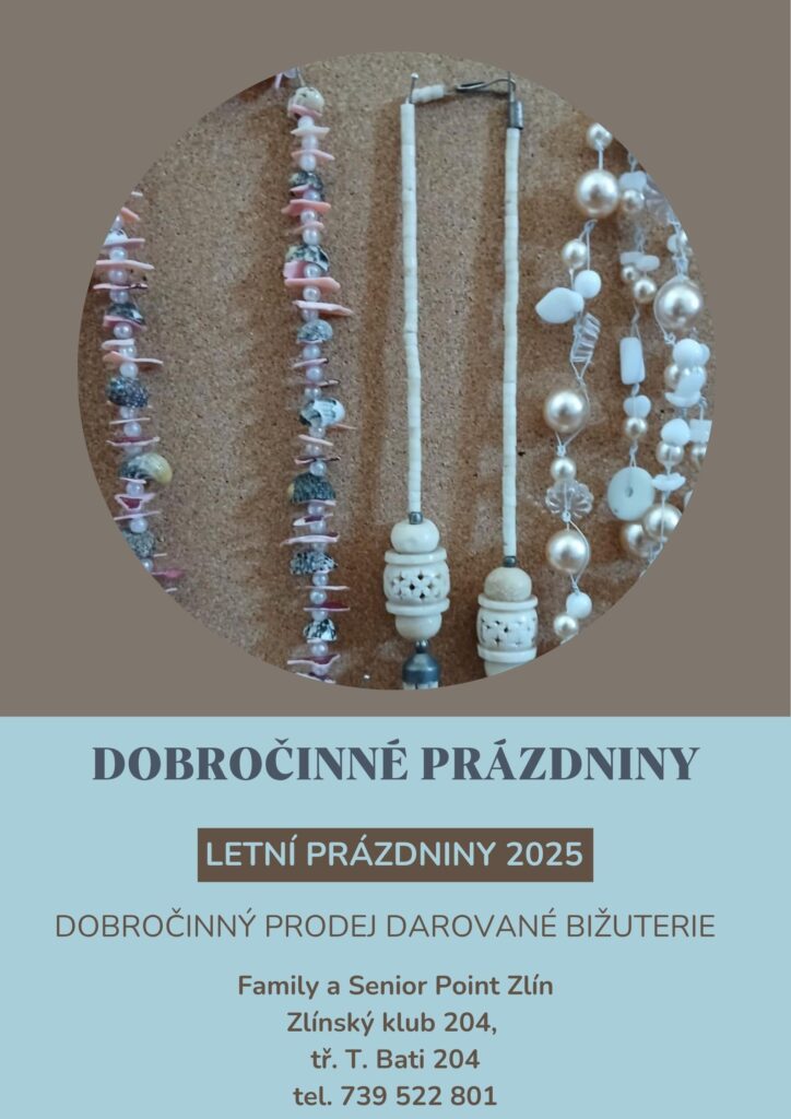Dobročinný prodej drobné bižuterie, kterou přinesli naši příznivci. Přijďte udělat prázdninovou radost sobě nebo někomu jinému.