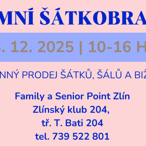 Dobročinný prodej drobné bižuterie, kterou přinesli naši příznivci. Přijďte udělat (před)vánoční radost sobě nebo někomu jinému. Výtěžek z akce bude určen pro Family a Senior Point Zlín. Děkujeme za podporu.